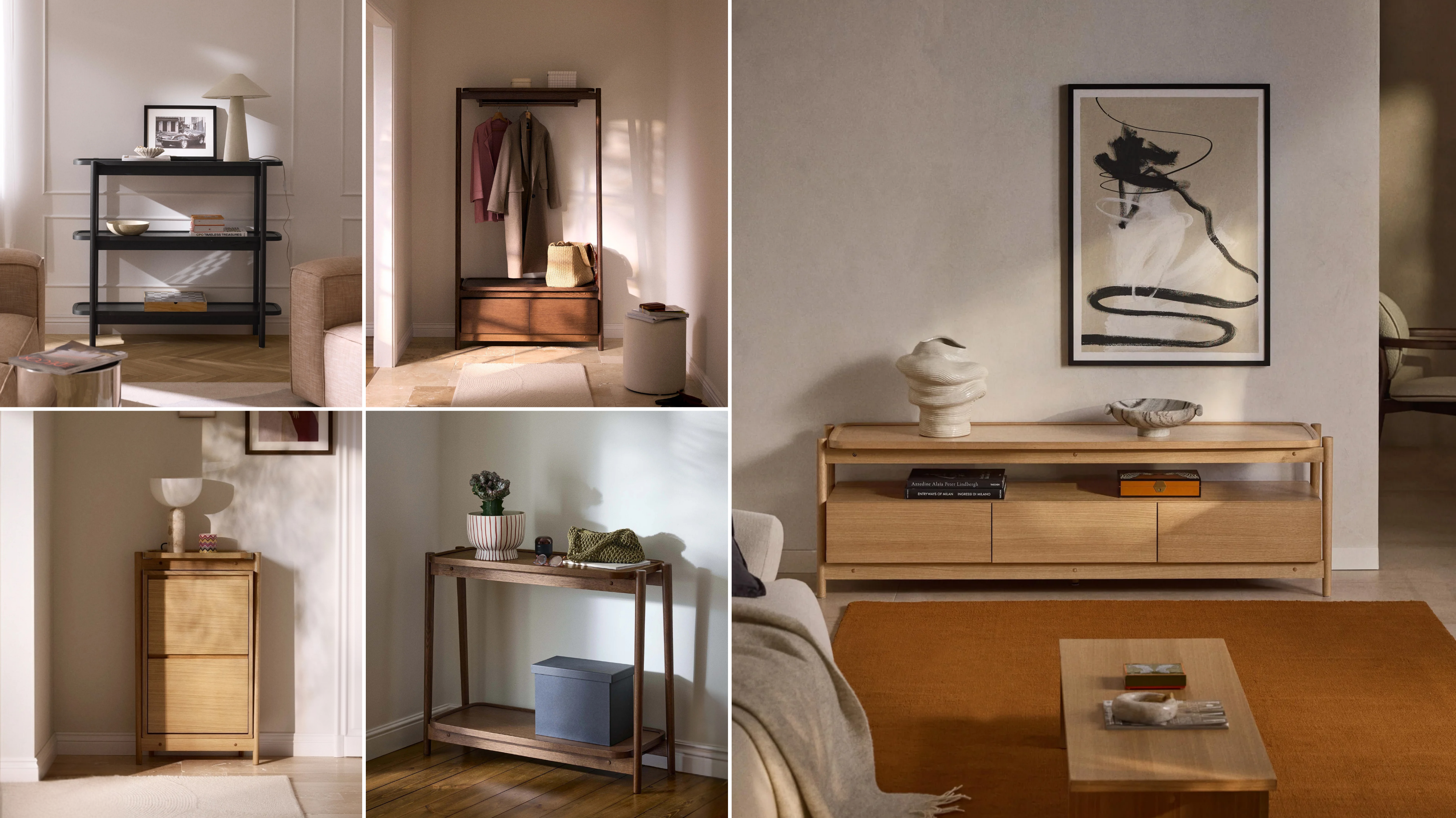 LIBBY is inspired by 60s design and brings the perfect balance of vintage and modern to the room. Rounded edges and an airy silhouette make the furniture feel less bulky, ideal for functional, open storage.